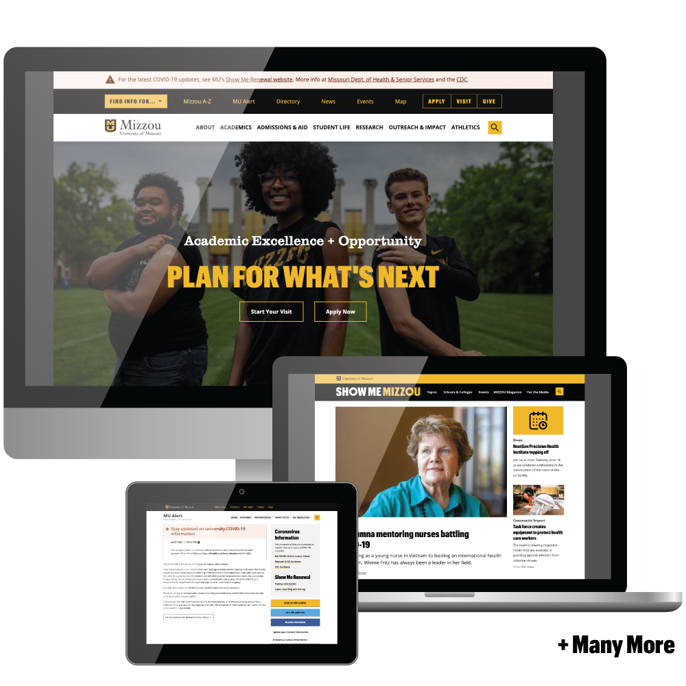 Worked with campus leadership to expand the University of Missouri’s web presence through modern, sophisticated web applications.