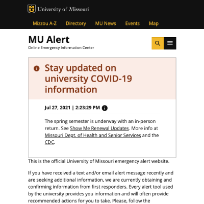 University of Missouri Main Website.